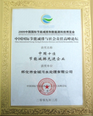 - 2009年3月在胡錦濤、溫家寶等中央領導出席的中國國際節能減排與新能源科技博覽會和高峰論壇上評為“中國十佳節能減排先進企業”。