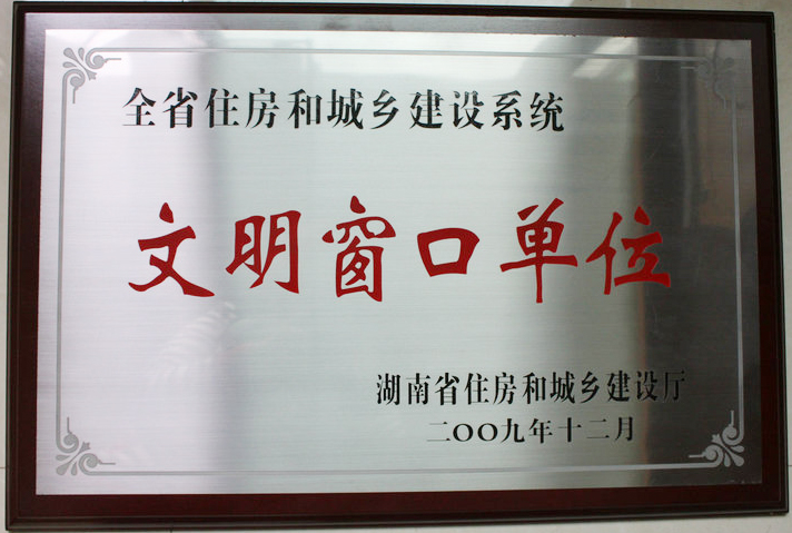 - 2009年12月被湖南省住房和城鄉建設廳評為“全省住房和城鄉建設系統文明窗口單位”